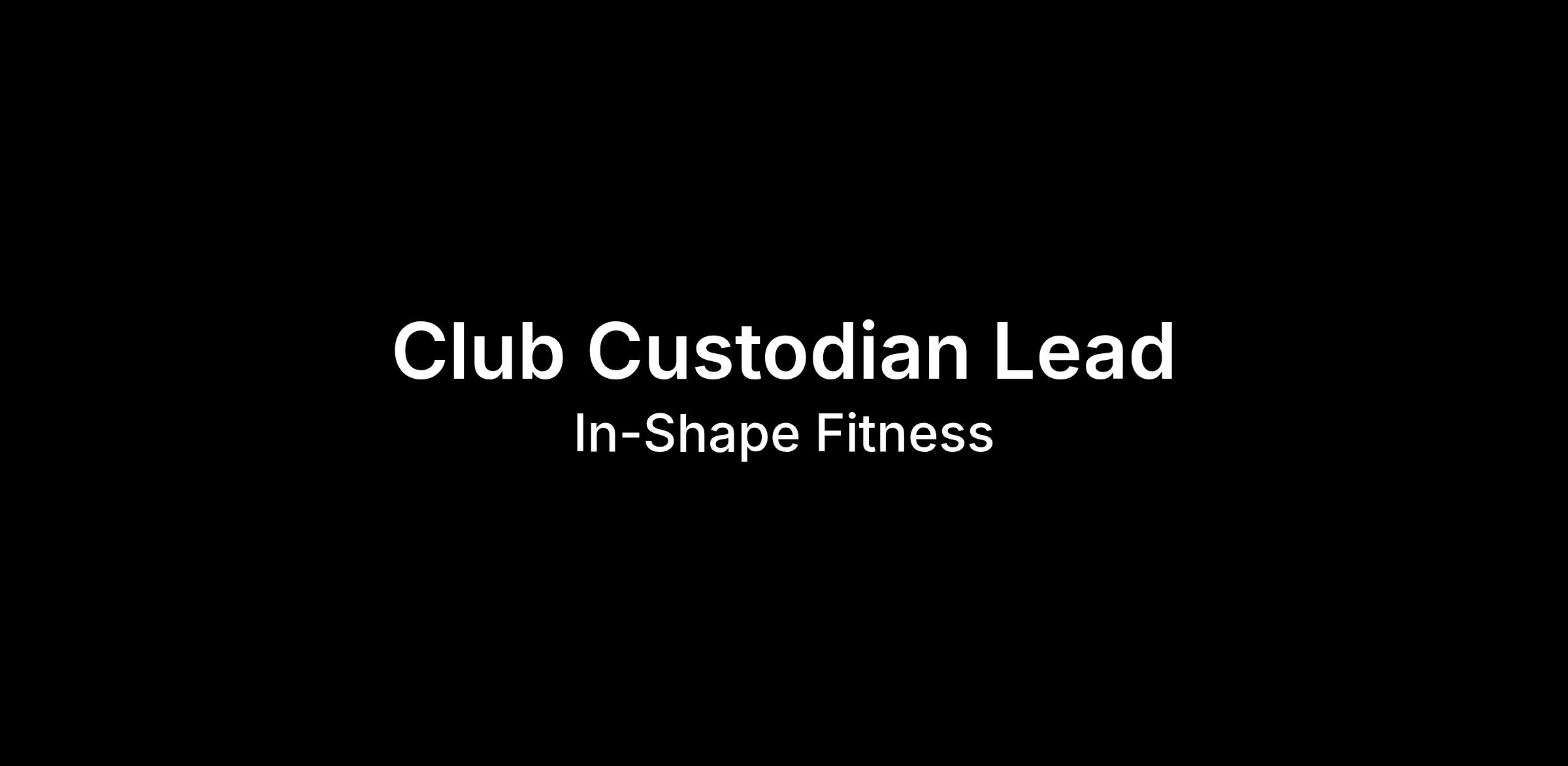 The Club Custodian Lead (CCL) is a part of our club’s leadership team and is responsible for keeping our clubs clean and safe for our members. This role is a perfect opportunity to start a leadership career in the fitness industry. Our Club Custodian team delivers the signature In-Shape Member Experience by providing a clean, safe, and maintained club environment for all members. The right candidate will thrive as they interact positively and professionally with staff, members, prospective members and guests while monitoring club cleanliness, safety, and maintenance standards.