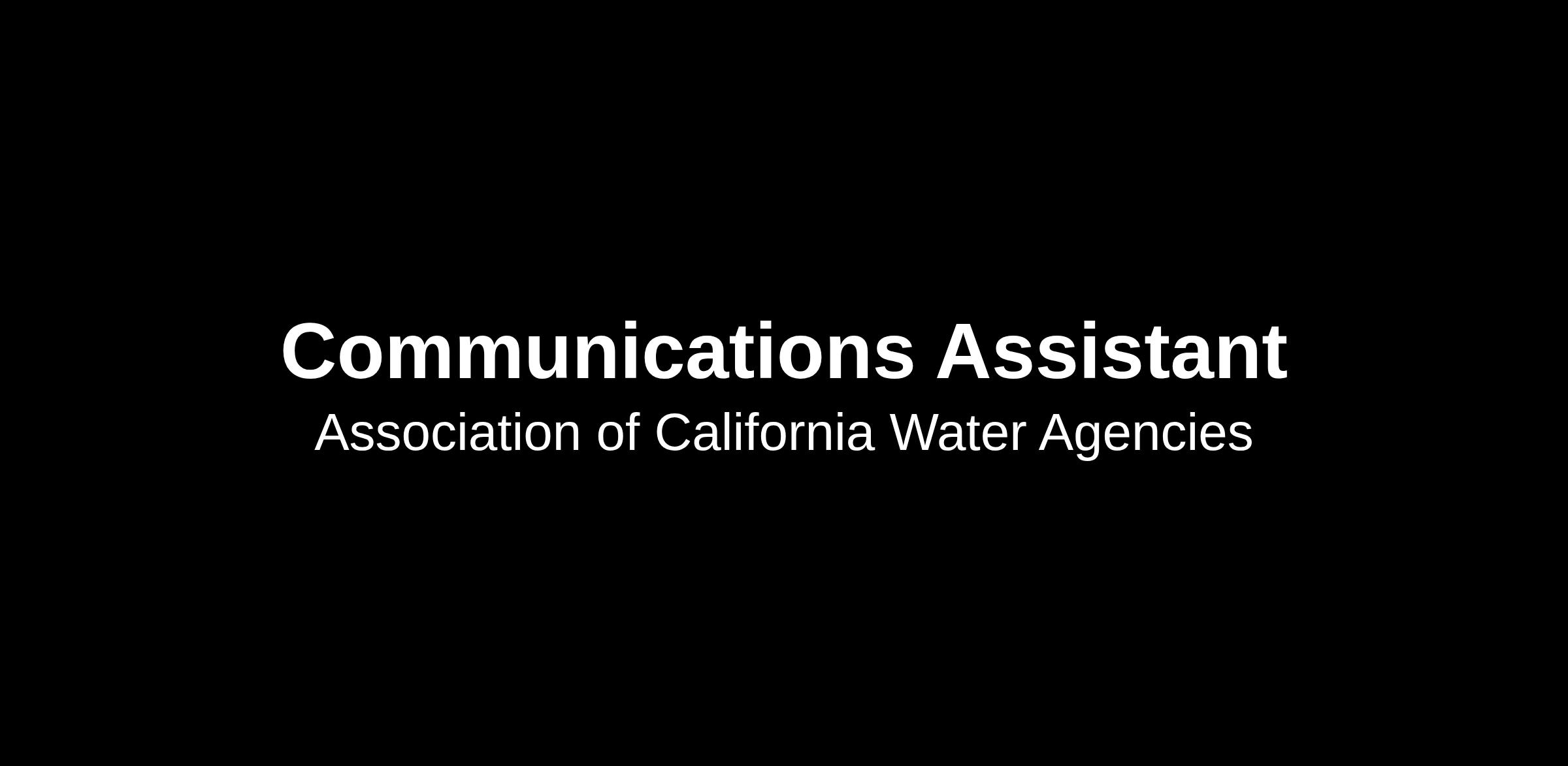 ACWA is seeking an organized, detail oriented and proactive communications professional who is eager to contribute. The ideal candidate should demonstrate strong writing skills, digital fluency, and the ability to manage multiple tasks with accuracy and professionalism. We are seeking someone who is adaptable, collaborative and ready to support evolving department needs. Candidates must possess an equivalent to an associate’s degree from an accredited college or university and, at a minimum, previous experience that provides knowledge of communications, public relations, journalism or graphic design