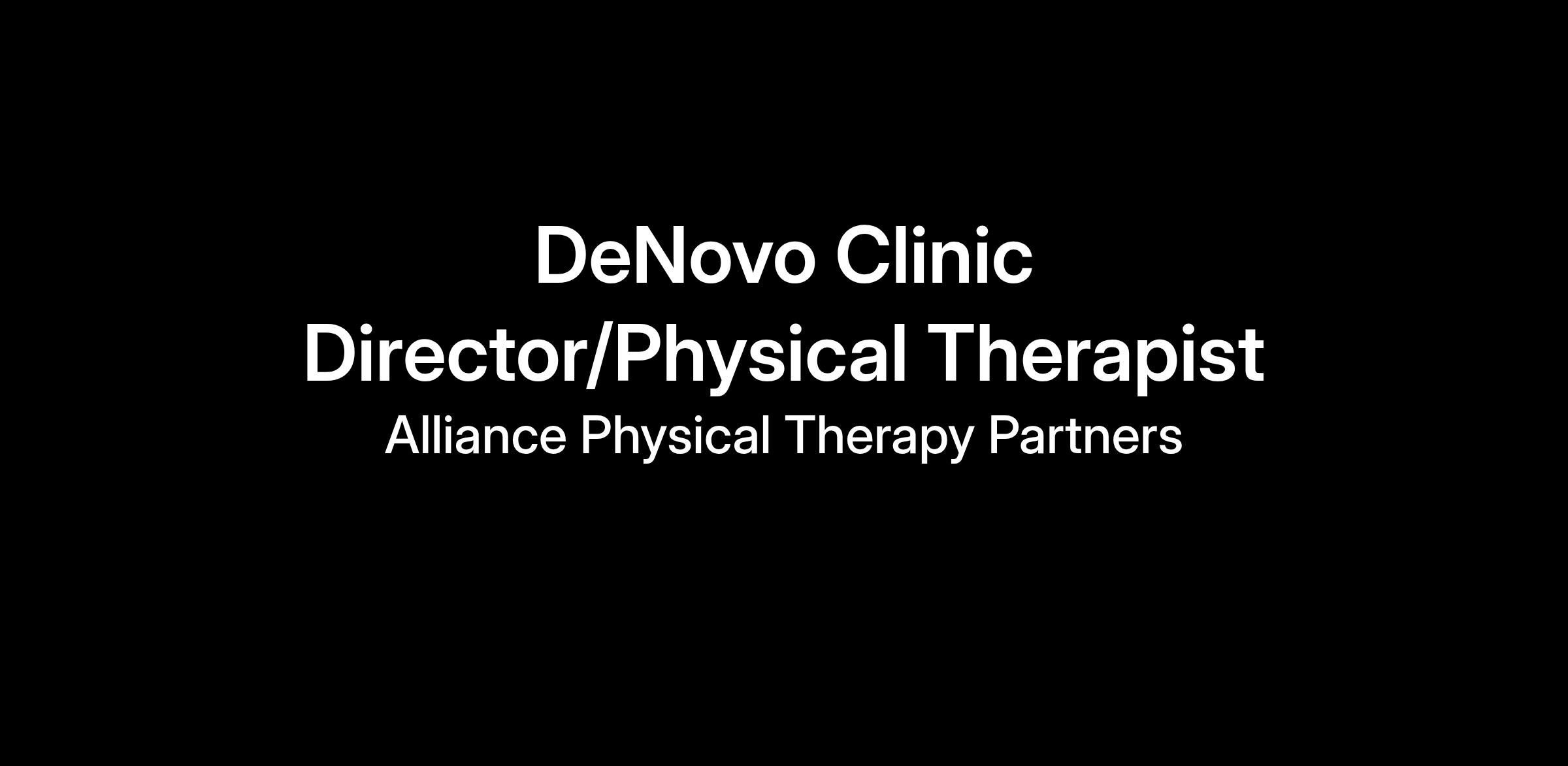 Summary: The Clinic Director of a new launch or “De NoVo” clinic is responsible for the growth and management of the physical therapy clinic including the financial well-being of the clinic, overall patient, and employee satisfaction, as well as the evaluation and treatment of patients. This includes effective clinical operations, clinical growth and staff development, and relationship building and referral growth and management with the local community, physicians and other sources of patients. They oversee all clinic staff and coordinate staff scheduling and management to optimize the operation of the clinic in accordance with standards set by Alliance PT. They also develop relationships with referring physicians and potential referring physicians to sustain and develop referral sources including case managers, attorneys, adjustors, etc. Success will be measured not only by clinical outcomes but by meeting revenue, profit, growth, and compliance goals, and also by relationships built with the staff, patients, and referral sources, as well as the clinical training and development of staff.