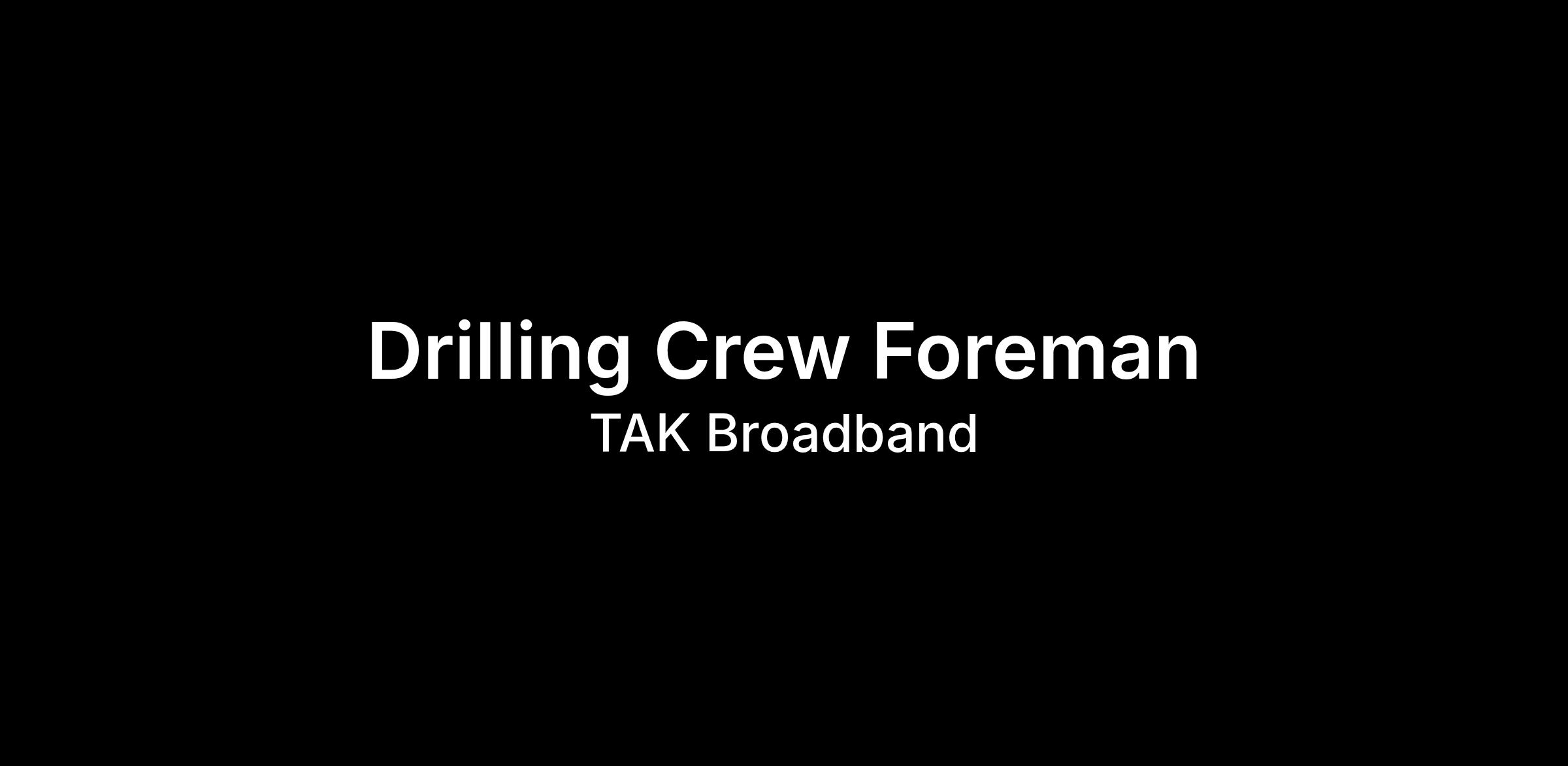 TAK is an Equal Opportunity Employer. All qualified applicants will receive consideration for employment without regard to race, color, religion, sex, sexual orientation, gender identity, national origin, age, disability, genetic information, protected veteran status, or any other characteristic protected by law. We maintain full compliance with the Americans with Disabilities Act and are committed to providing equal access throughout our employment practices. Individuals with disabilities may request reasonable accommodations during the application and hiring process by contacting TAKRecruiter@takbroadband.com.