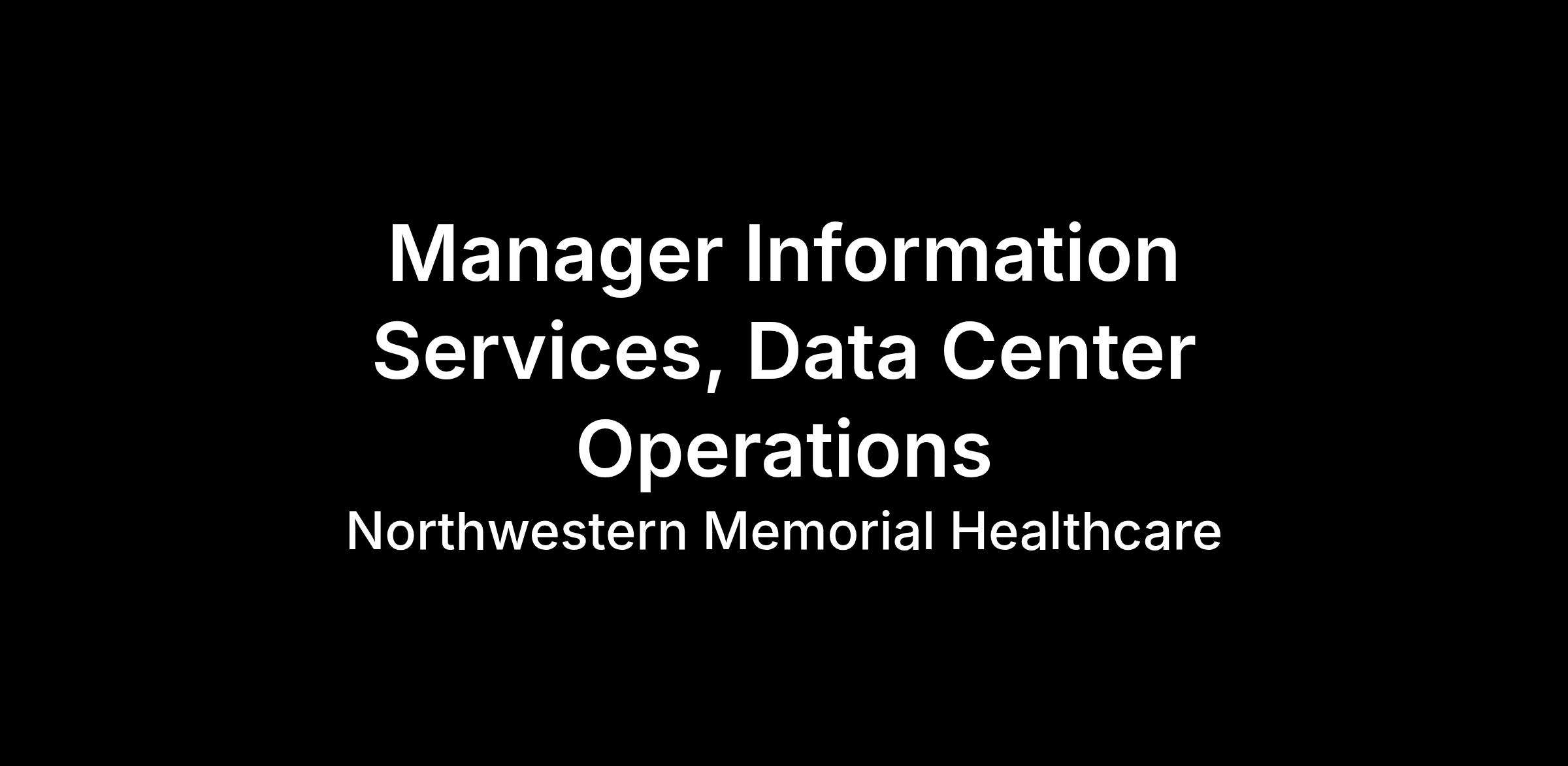 The Manager, Information Services reflects the mission, vision, and values of Northwestern Memorial, adheres to the organization’s Code of Ethics and Corporate Compliance Program, and complies with all relevant policies, procedures, guidelines and all other regulatory and accreditation standards.