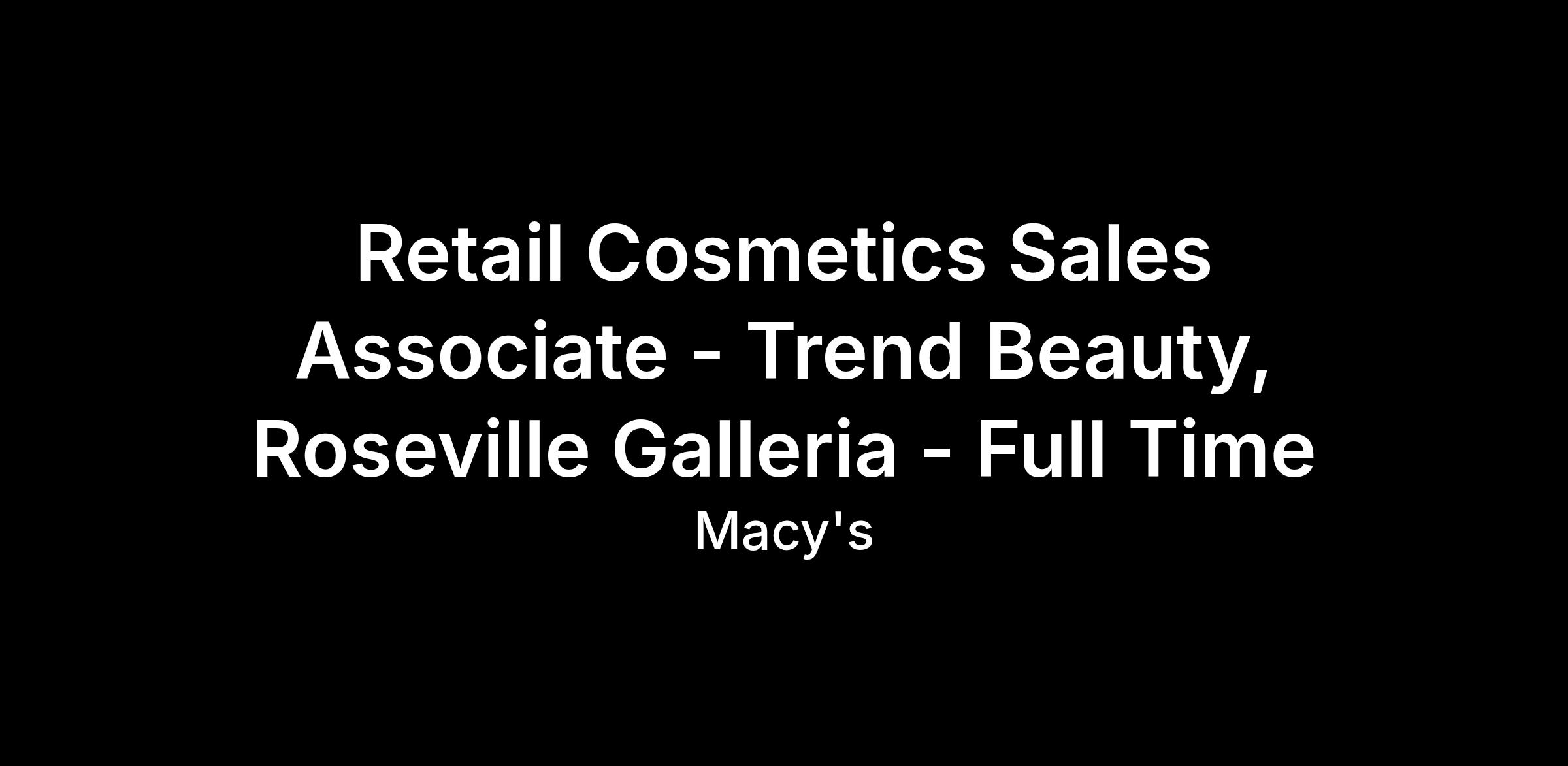 Retail Cosmetics Sales Associate - Trend Beauty, Roseville Galleria - Full Time