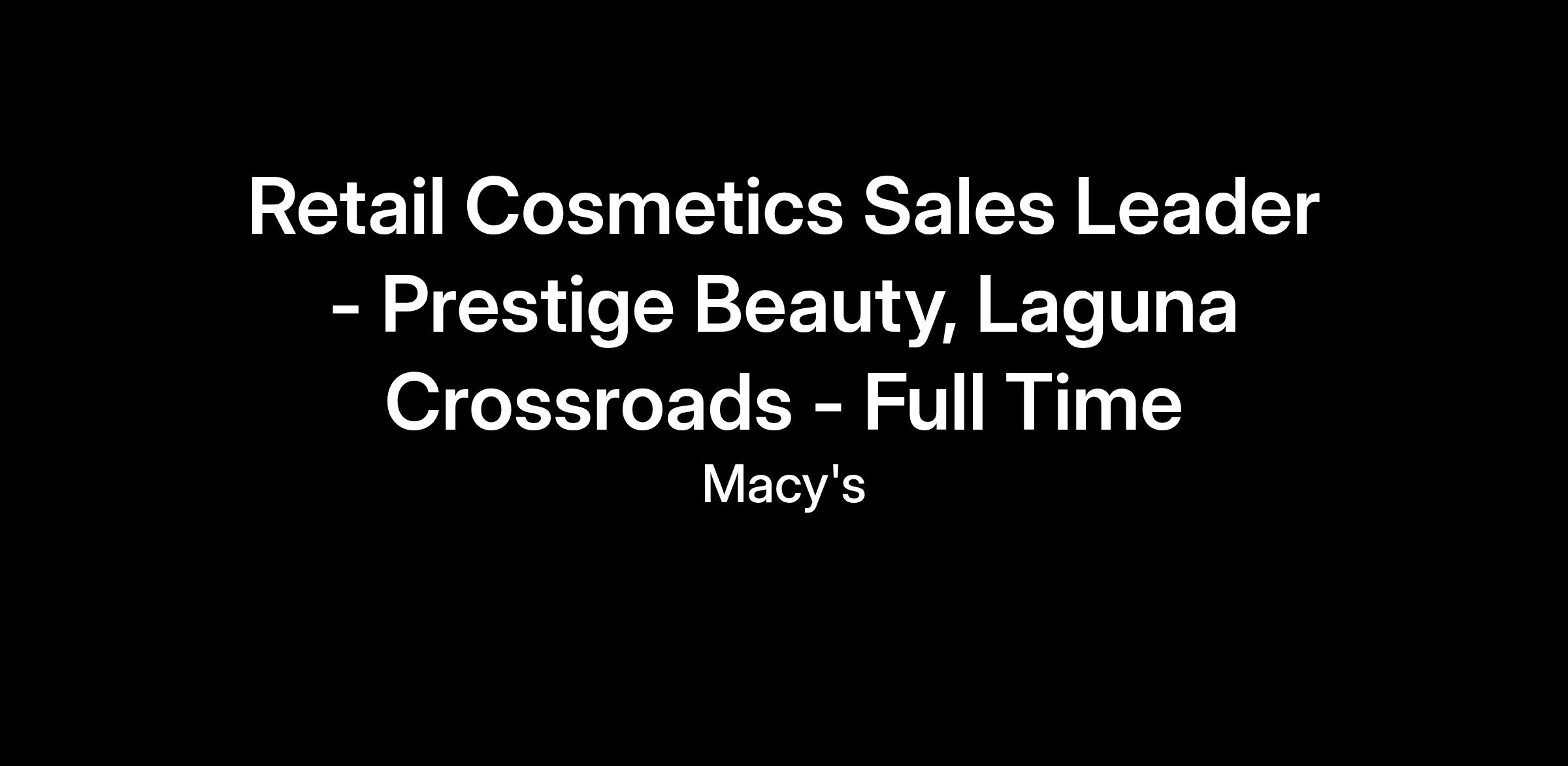 As a Leader, Prestige Selling at Macy’s, you play a key role in driving sales, elevating the customer experience, and supporting the success of our Beauty department. As the expert across multiple prestige cosmetics brands, you combine strong product knowledge, leadership skills, and a passion for beauty to create a high-performing and customer-focused environment.