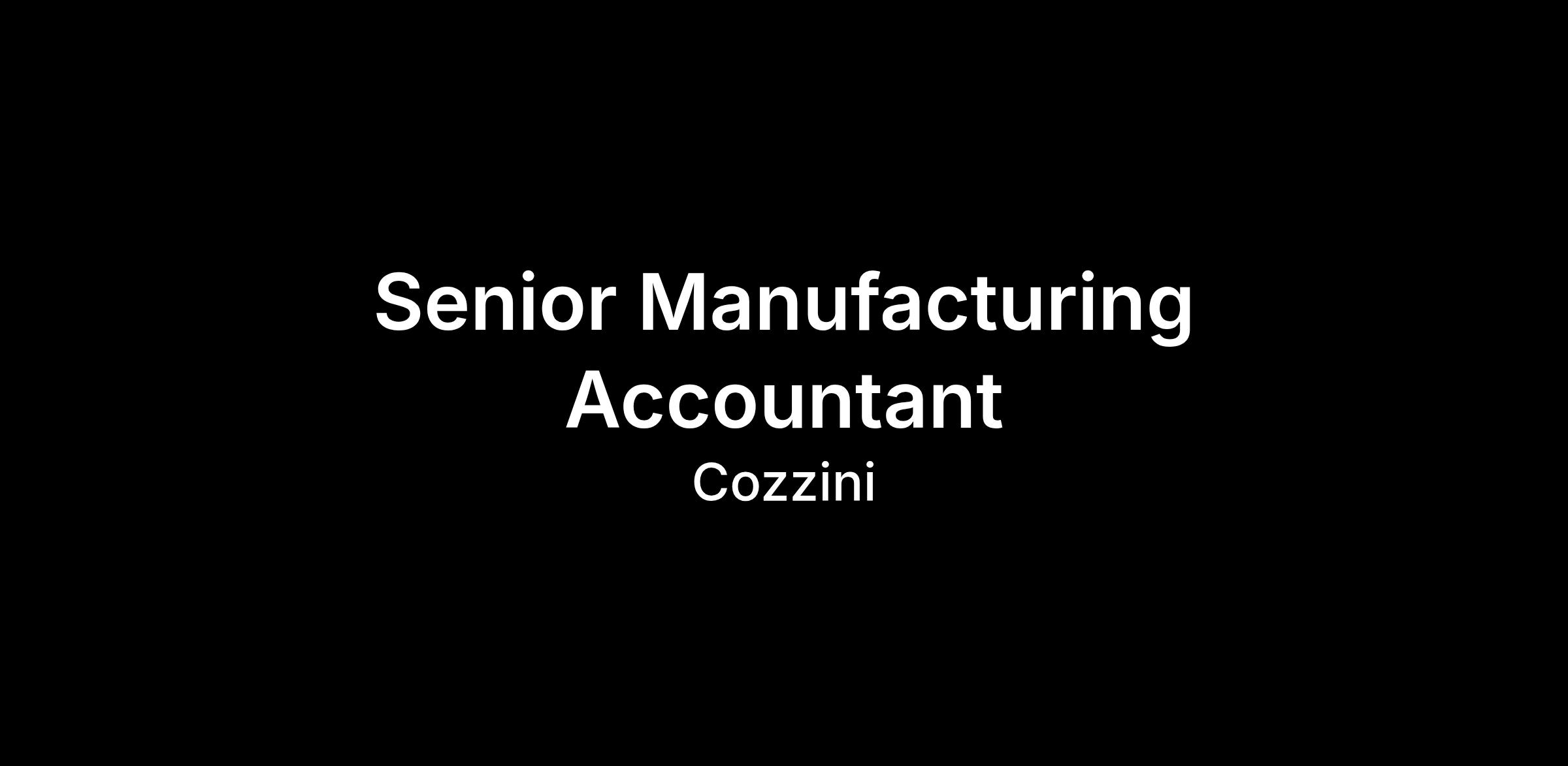 Cozzini has a great opportunity for a Senior Manufacturing Accountant to join our Accounting/Finance Team!