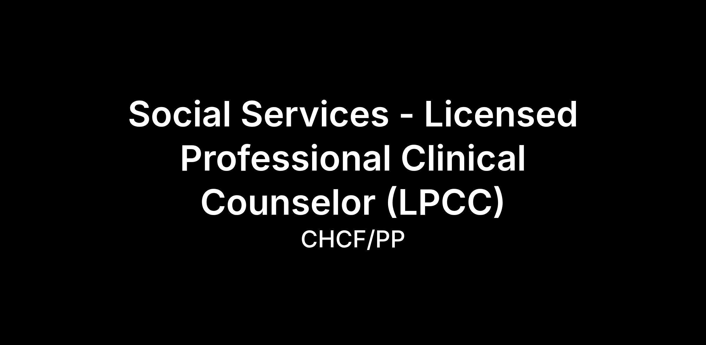 Genie Healthcare is looking for a Social Services to work in Licensed Professional Clinical Counselor (LPCC) for a 19.14 weeks travel assignment located in Stockton, CA for the Shift (4x10 Days-Please verify shift details with recruiter, 07:00:00-17:00:00, 10.00-4).